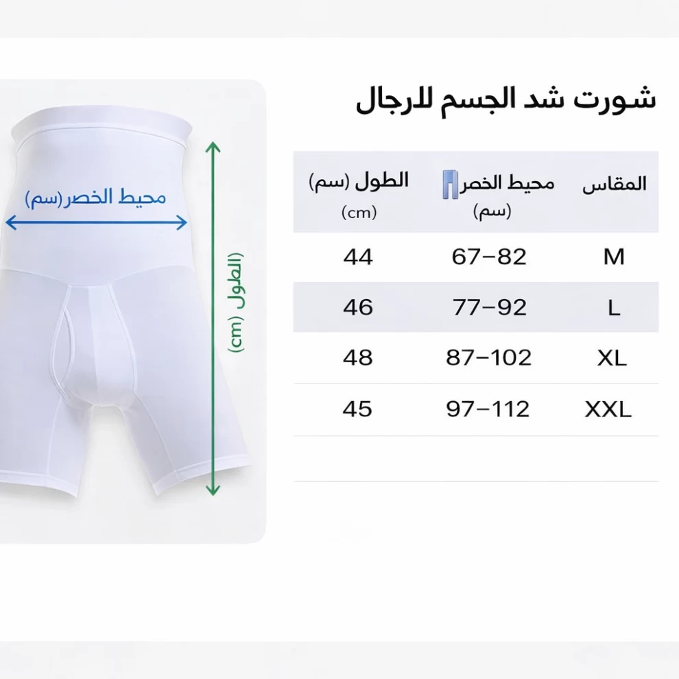 تحكم في مظهرك وزد ثقتك بنفسك فورًا 💪 هذا الشورت المشد الرجالي مصمم لشد الخصر، رفع المؤخرة، وتنسيق الفخذين — مع راحة تامة وخفاء تحت الملابس. مثالي للاستخدام اليومي، التمارين الرياضية، الملابس الرسمية، والمناسبات الخاصة، ليمنحك قوامًا ذكوريًا مشدودًا طوال اليوم.
