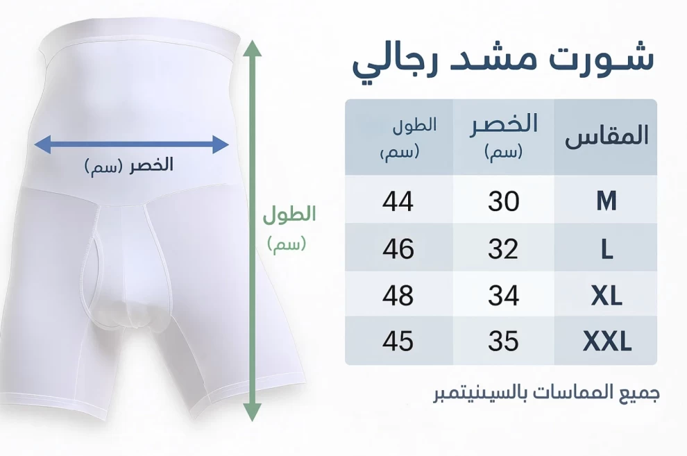 تحكم في مظهرك وزد ثقتك بنفسك فورًا 💪 هذا الشورت المشد الرجالي مصمم لشد الخصر، رفع المؤخرة، وتنسيق الفخذين — مع راحة تامة وخفاء تحت الملابس. مثالي للاستخدام اليومي، التمارين الرياضية، الملابس الرسمية، والمناسبات الخاصة، ليمنحك قوامًا ذكوريًا مشدودًا طوال اليوم.