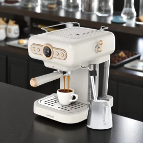 استمتع بتجربة المقهى في منزلك مع ماكينة ليبريسو ريترو للإسبريسو. بتصميم كلاسيكي أنيق، ومقياس ضغط مدمج للغلاية، وبخاخ حليب احترافي، هذه الماكينة مثالية لعشاق الإسبريسو الذين يبحثون عن الأداء والأناقة في جهاز واحد. سواء لتحضير الإسبريسو، الكابتشينو أو اللاتيه، تمنحك تجربة باريستا حقيقية بحجم مدمج وسهل الاستخدام.
