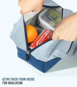 احمل وجباتك بأناقة واستدامة مع حقيبة الغداء من القماش القطني 100%. مناسبة للرجال، النساء، والأطفال، وهي صديقة للبيئة، قابلة لإعادة الاستخدام والغسل، ومقاومة للتسرب، وتحافظ على طعامك ساخنًا أو باردًا لفترة أطول. مثالية للمكتب، المدرسة، النزهات، أو الأنشطة الخارجية، بسعة 8 لترات وتصميم جذاب بالألوان الأزرق والسماوي.