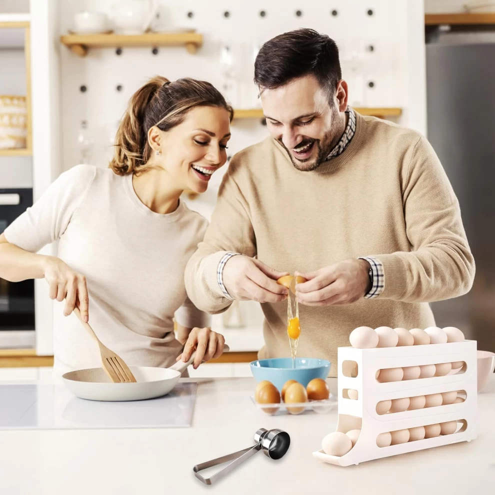 حافظة بيض للثلاجة – 30 بيضة، 4 مستويات مع آلية دوران تلقائي