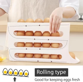 حافظ على البيض مرتبًا وطازجًا وسهل الوصول معه مع حافظة البيض للثلاجة – سعة 30 بيضة. تحتوي على 4 مستويات مع آلية دوران تلقائي لتخزين البيض بأمان مع الحفاظ على مساحة الثلاجة. تصميم الدوران يضمن مبدأ الأول في الأول خارج للحفاظ على الطزاجة، كما أن الهيكل القابل للتكديس يناسب أي مطبخ أو ثلاجة.