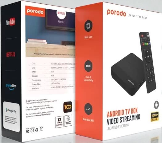 مع جهاز أندرويد تي في من بورودو، يمكنك مشاهدة الأفلام، المسلسلات، المباريات، اليوتيوب والألعاب مباشرة على شاشة التلفزيون بكل سهولة. فقط قم بالتوصيل وتمتع بتجربة تلفزيون ذكي كاملة.