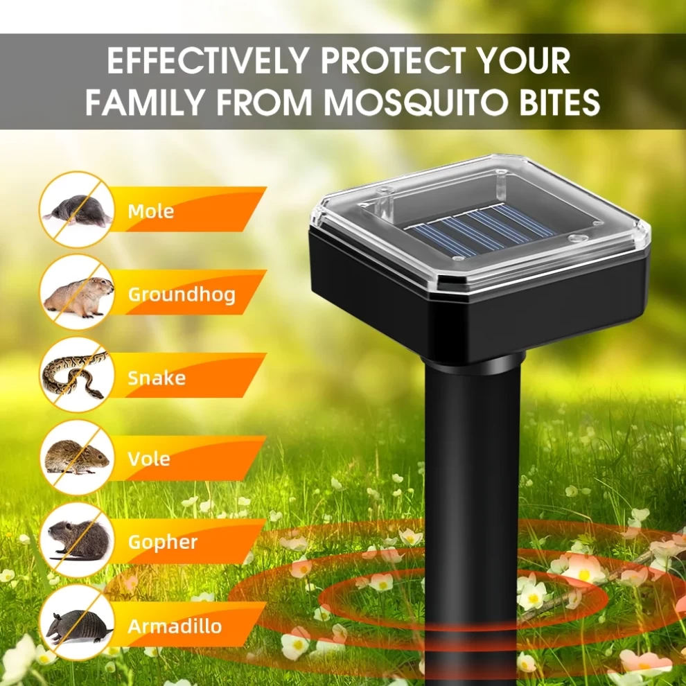 • موجات فوق صوتية + اهتزازات لإبعاد الشامات والجرذان والحيّات والقوارض وحيوانات الحفر.