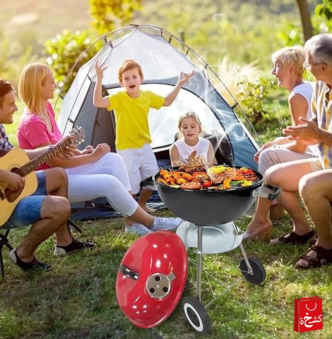 🔥 شواية فحم مستديرة بغطاء أحمر – 18 إنش