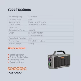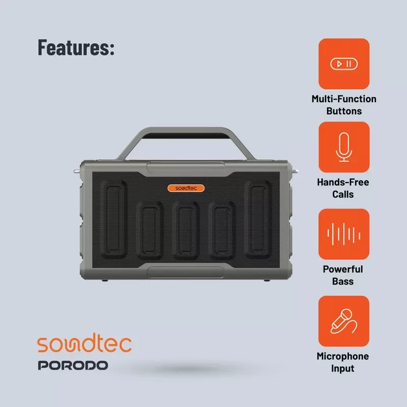 حوّل أي مناسبة إلى حفلة مع سماعة الحفلات بورودو Soundtec Surge بقناة 2.2. مصممة لتقديم صوت قوي بعمق وبوضوح عالي، مما يجعلها مثالية للحفلات المنزلية والفعاليات الخارجية والمناسبات الخاصة. تتميز باتصال متعدد وخامة قوية محمولة.