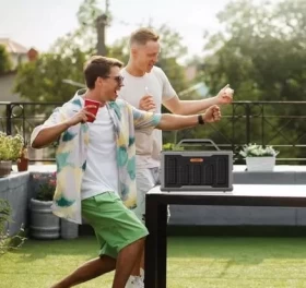• المميزات: إضاءة LED، مدخل ميكروفون، صوت جهير قوي