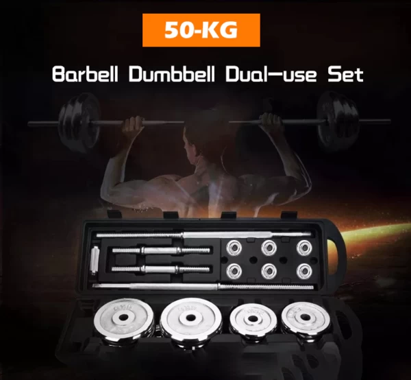 • 💪 طقم كامل 50 كجم – مناسب للتمارين الكاملة للجسم
