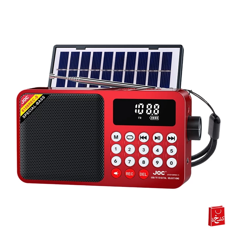 📻 جهاز راديو محمول JOC-6108 مع مشغل MP3 – بلوتوث، USB، سماعة وشحن شمسي 🌞