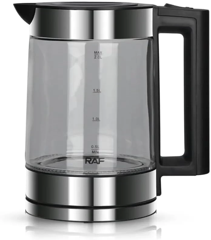 غلاية كهربائية زجاج RAF سعة 2 لتر – مع مصفاة شاي وعلامات حرارة