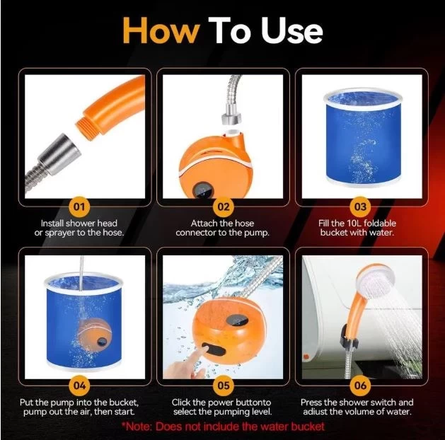Stay fresh anywhere with the Portable Outdoor Electric Camping Shower — your perfect companion for camping, hiking, travel, or pet washing. Featuring a rechargeable pump and compact design, this shower provides steady water pressure on the go. Just drop the pump into a bucket or water container and enjoy an instant, refreshing outdoor shower!