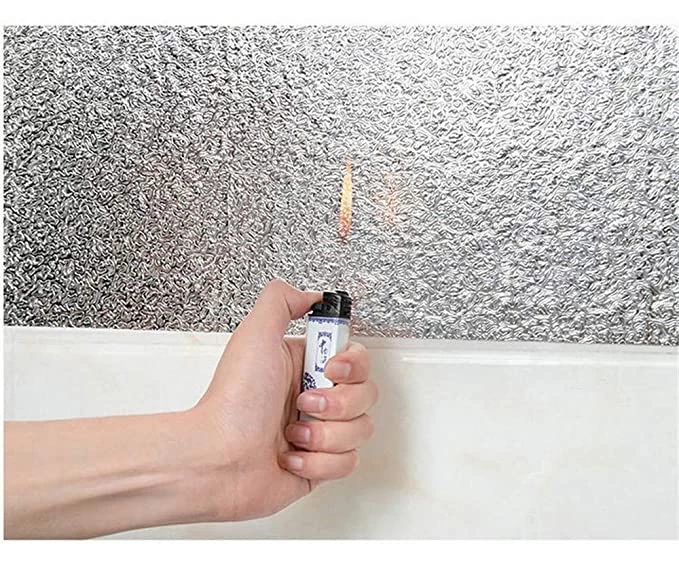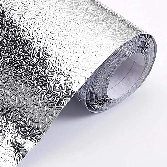 Kitchen Self-Adhesive Waterproof Foil Wallpaper – Silver Oil-Proof Roll
