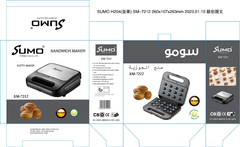 Make fresh, homemade walnut-shaped treats effortlessly with the Walnut Maker Device SM-7212. Featuring non-stick plates and a powerful heating system, it ensures even cooking and easy release. Compact and lightweight, it’s perfect for home baking, family treats, or festive desserts.
