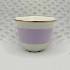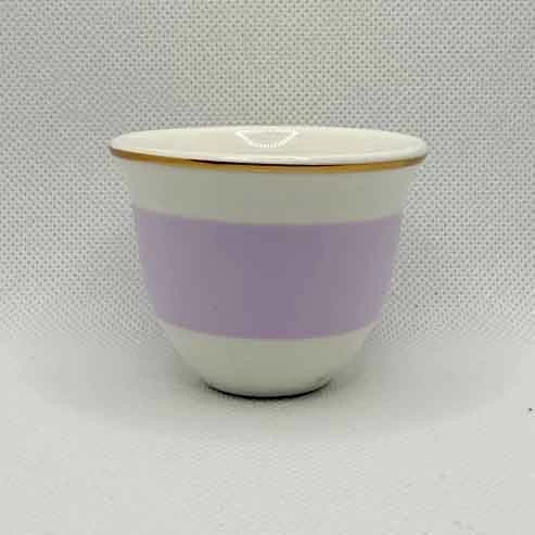 Each cup features a golden rim and soft purple details, adding a luxurious touch to your coffee table.