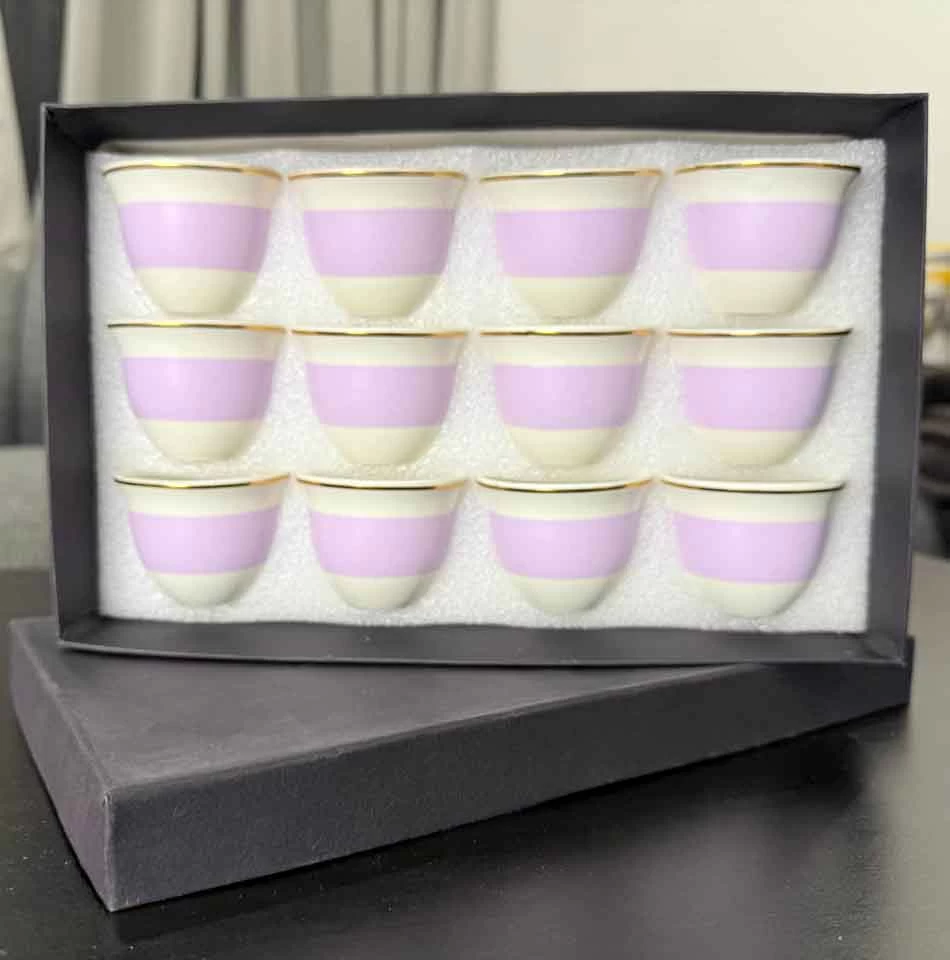 Luxury Arabic Coffee Cup Set – 12 Pieces of High-Quality Porcelain with Elegant Design
