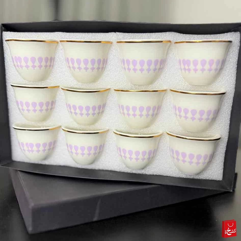 Luxury Arabic Coffee Cup Set – 12 Pieces of High-Quality Porcelain with Elegant Design