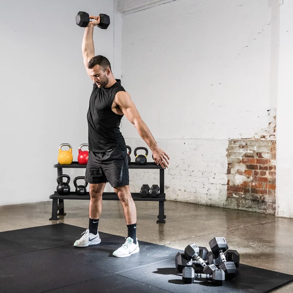 • 1 × 10KG Rubber Hex Dumbbell (Black)