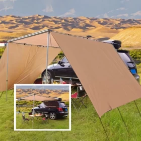 Upgrade your outdoor adventures with the HI-TEX car side awning, designed to provide instant shade, comfort, and protection. With a large coverage area and two additional extensions, it is perfect for camping, picnics, off-road trips, and beach outings.