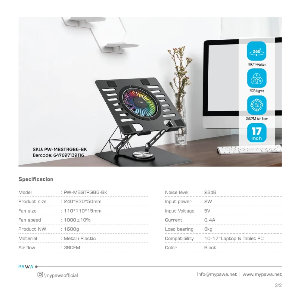 📦 1× Pawa Laptop Cooling Stand with RGB Light
