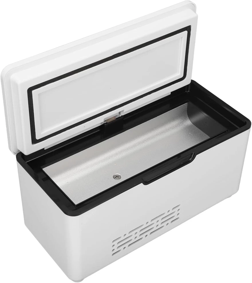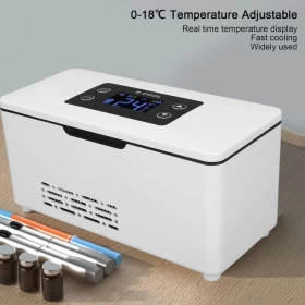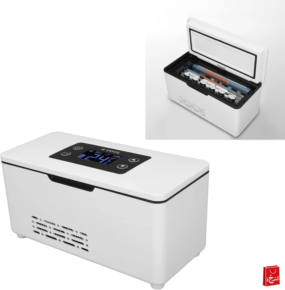 Keep your medications, drinks, and essentials safely cooled with the Cooling Portable Refrigerator Box. Designed for home, office, and car use, this mini fridge features a digital LED display for temperature control and compact portability for travel convenience. Ideal for insulin storage, cosmetics, beverages, and more.