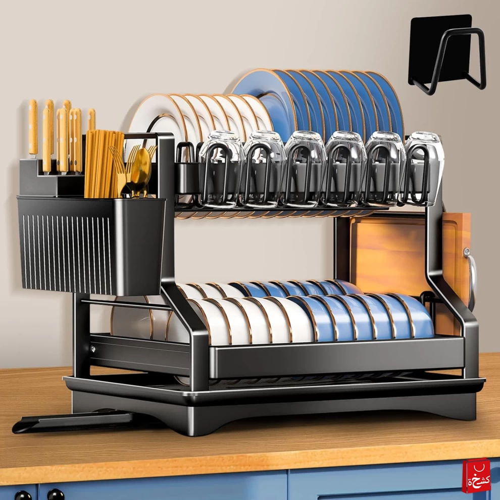Upgrade your kitchen with the 2-Tier Black Stainless Steel Dish Drainer. Designed for maximum storage and efficient drying, this durable rack features a utensil holder, cup holder, and removable drip tray to keep your sink area clean and organized. Perfect for modern kitchens needing style and functionality.