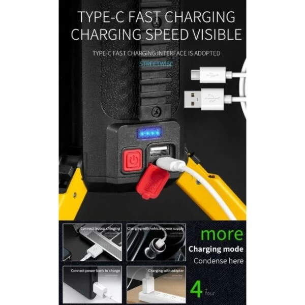 Equipped with COB high-brightness lighting and mobile phone charging support, this searchlight is perfect for camping, work sites, power outages, and night activities.
