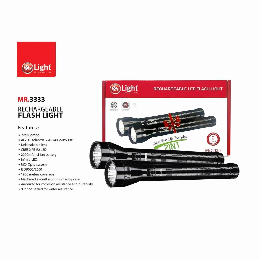 Mr.Light MR.3333 Rechargeable LED Flashlight – 2PCS Set