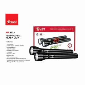 The Mr.Light MR.3333 Flashlight Set is built with durable materials and long-lasting LED technology, ensuring reliable performance for daily and emergency use. Warranty and service depend on seller policy.