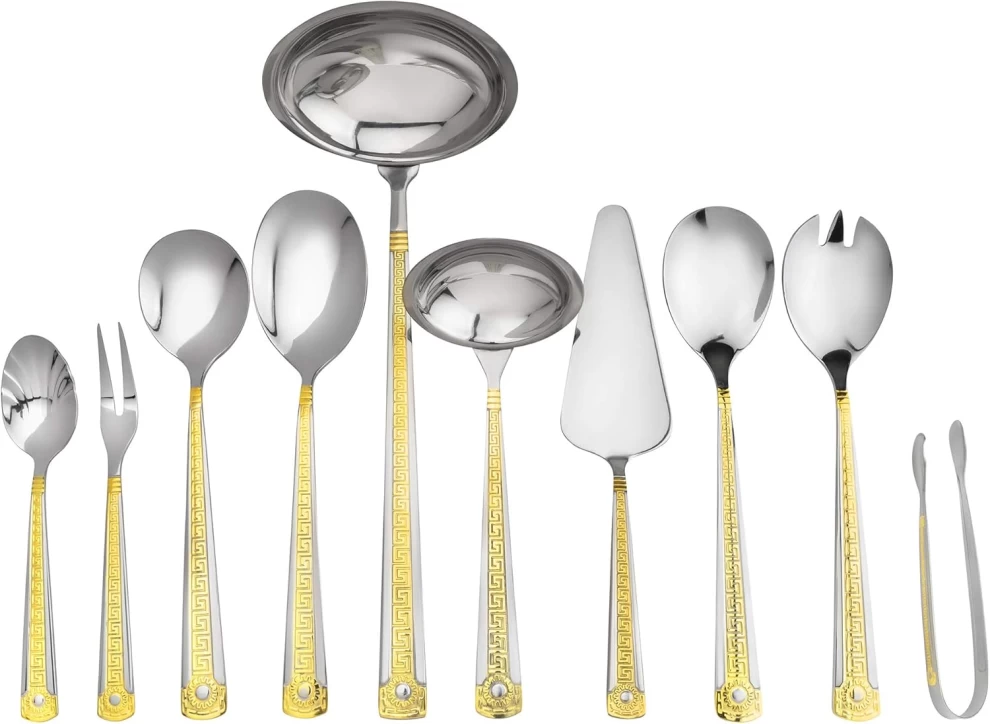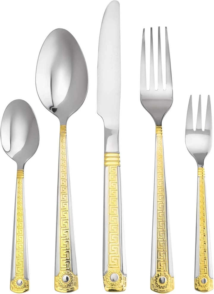 Crafted from high-quality stainless steel, the Italian Collection Antique Greek Flatware Set is designed for long-lasting durability and elegant presentation at every meal.