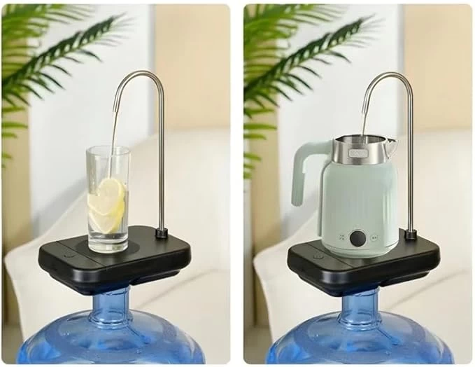 Powered by a rechargeable battery and USB charging, this compact pump fits most standard water gallon bottles and is perfect for homes, offices, kitchens, and outdoor use.