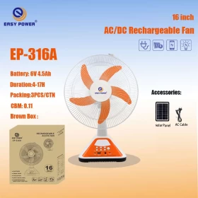 Stay cool anywhere with the 16-Inch Rechargeable Solar Power Stand Fan. Designed for home, outdoor, and emergency use, this fan offers powerful airflow with rechargeable battery support and solar charging capability. Whether you need cooling during power outages or for camping trips, this multi-functional fan delivers comfort and convenience anytime.
