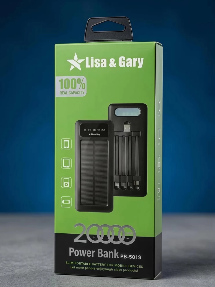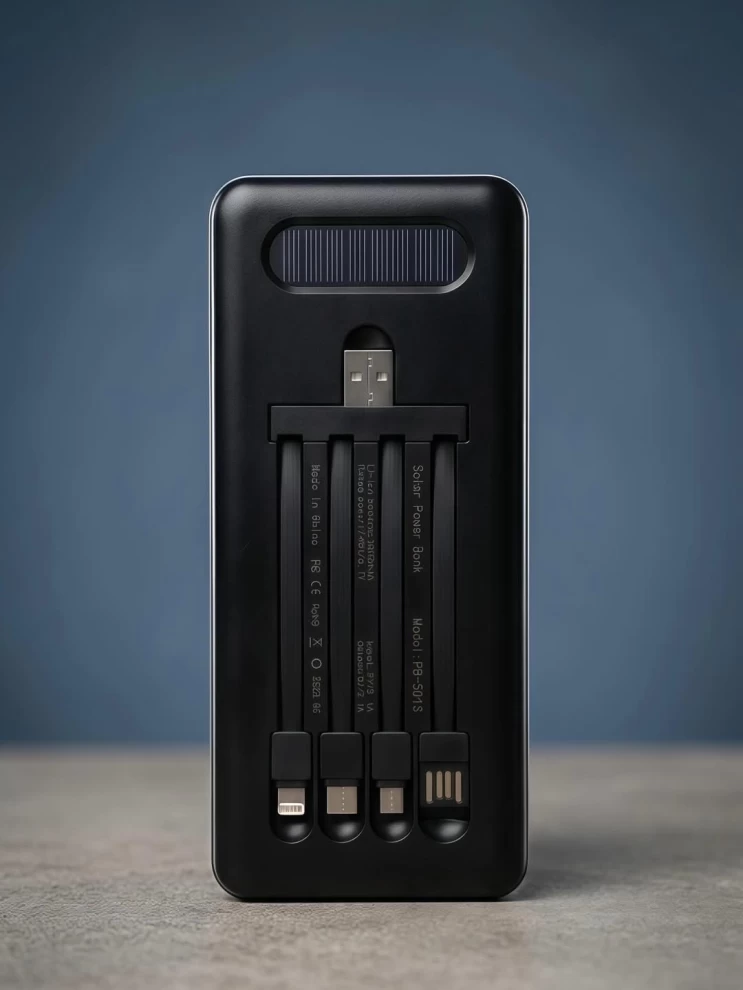 Stay powered wherever you go with this Solar Power Bank Portable Charger – 20000mAh, designed for reliable charging during travel, outdoor adventures, or everyday use. Featuring built-in charging cables, a solar panel, and a high-capacity battery, this portable power bank allows you to charge multiple devices without carrying extra wires. Whether you’re camping, commuting, or dealing with power outages, it keeps your smartphones, tablets, and small electronics charged anytime, anywhere.