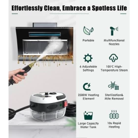 Experience powerful, chemical-free cleaning with the High Pressure Portable Steam Cleaner, designed to remove stubborn grease, grime, and bacteria using high-temperature steam and 3 BAR pressure. With a 2500W heating element that heats up in just 10 seconds, this versatile cleaning tool is perfect for homes, cars, kitchens, bathrooms, and even commercial environments. Lightweight and portable, it delivers professional-level cleaning while saving time and effort. Whether you need to clean car interiors, tiles, grout, carpets, or kitchen surfaces, this steam cleaner makes deep cleaning simple and efficient.